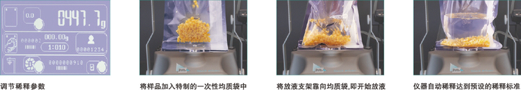 - 使工作簡易化:菌質袋內的樣本重量是不確定的,但儀器可根據稀釋比例自動加入稀釋液,無需人為計算。兩泵可分別單獨工作或同時工作。稀釋好的樣本可直接用吸管轉移至Eddy Jet 2的樣品杯或其他容器中。