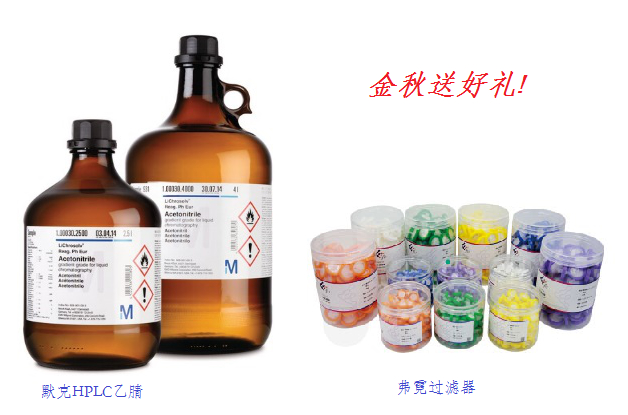 為答謝客戶對于默克產品一貫的支持,我們推出買一送一的活動,從9月1日起,每購買默克一箱乙腈送一盒弗霓品牌高品質濾器(PES和尼龍二選一),多買多送,活動截止到今年年底。