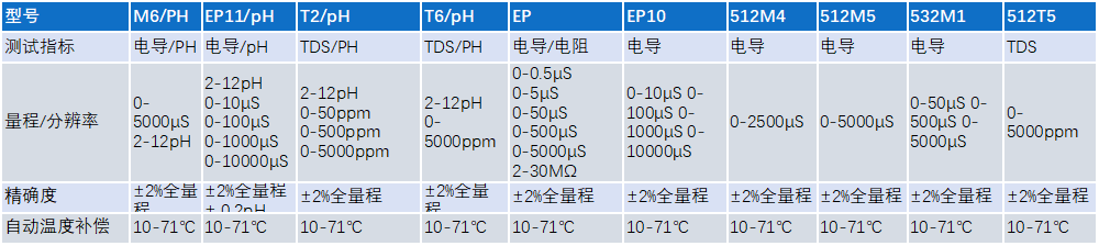 全部自帶溫度補償功能,測試方便準確!