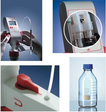 用VITLAB “continuous”數(shù)字滴定器,你可以進(jìn)行連續(xù)的滴定并得到可靠的結(jié)果,為您在這個(gè)過(guò)程中節(jié)省大量時(shí)間。獲得專利的雙活塞泵設(shè)計(jì)使得溶液得以持續(xù)測(cè)量無(wú)需重復(fù)灌裝。此外,這種創(chuàng)新技術(shù)大大提高了安全性,它的緊湊型結(jié)構(gòu)和低重心構(gòu)造極大地降低了液體泄露的風(fēng)險(xiǎn)。排液管的長(zhǎng)度和高度都可以調(diào)節(jié),使其可適用于各種高度的瓶子。獲得專利的回流閥設(shè)計(jì)具有兩大優(yōu)點(diǎn):防止貴重試劑的損失和液體飛濺。另外還具有簡(jiǎn)單易用的校準(zhǔn)功能。誤差全部都在德國(guó)DIN EN ISO 8665-3標(biāo)準(zhǔn)要求的范圍內(nèi)。