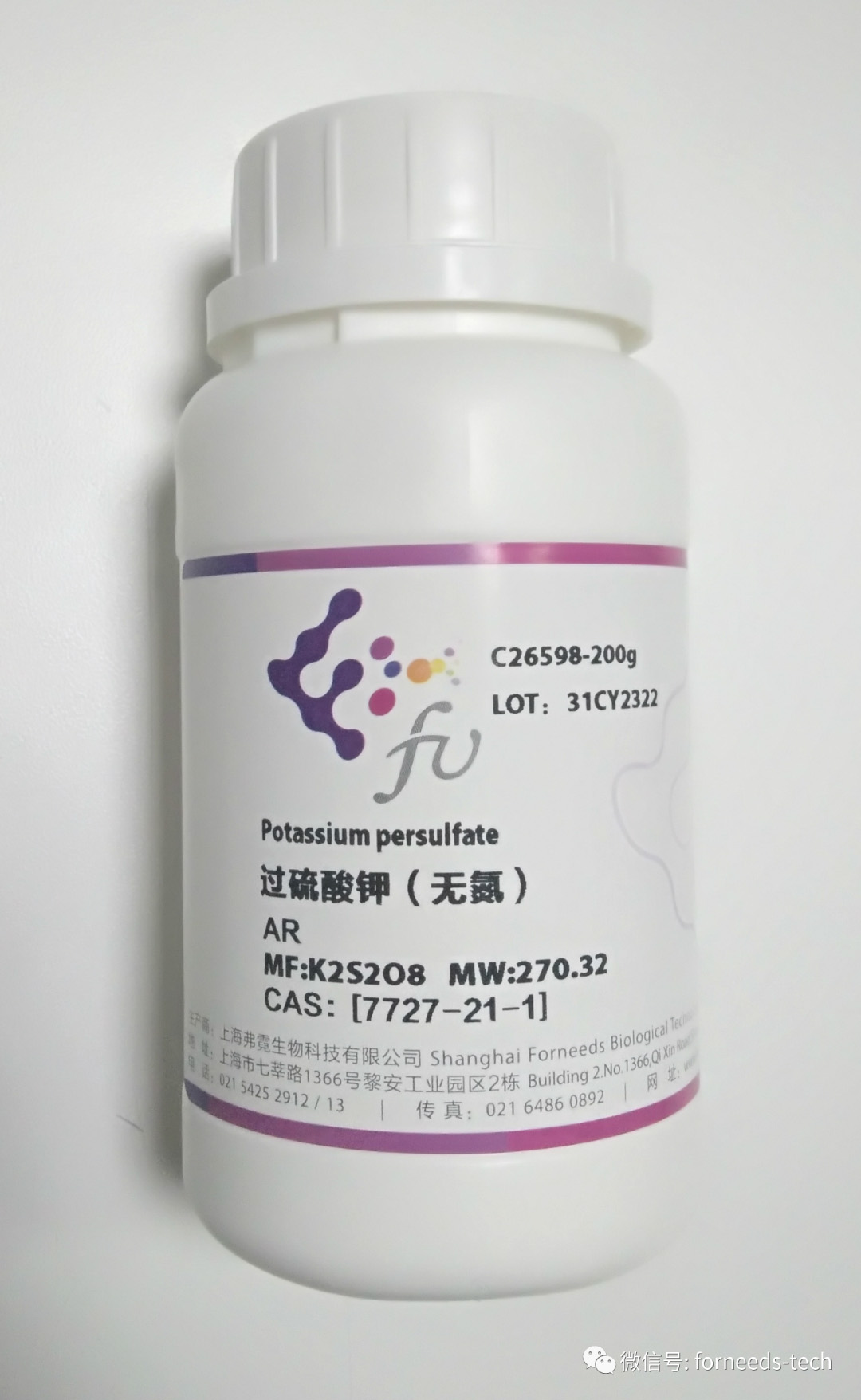 弗霓提供符合此國標使用的過硫酸鉀無氮AR試劑,此產品區別于市售其他產品,不使用過硫酸銨為原料,原料及過程中都避免了N元素的摻入,保證出結果,無需耗時費力的重結晶提純,無需各個環節找失敗原因,開瓶直接使用。