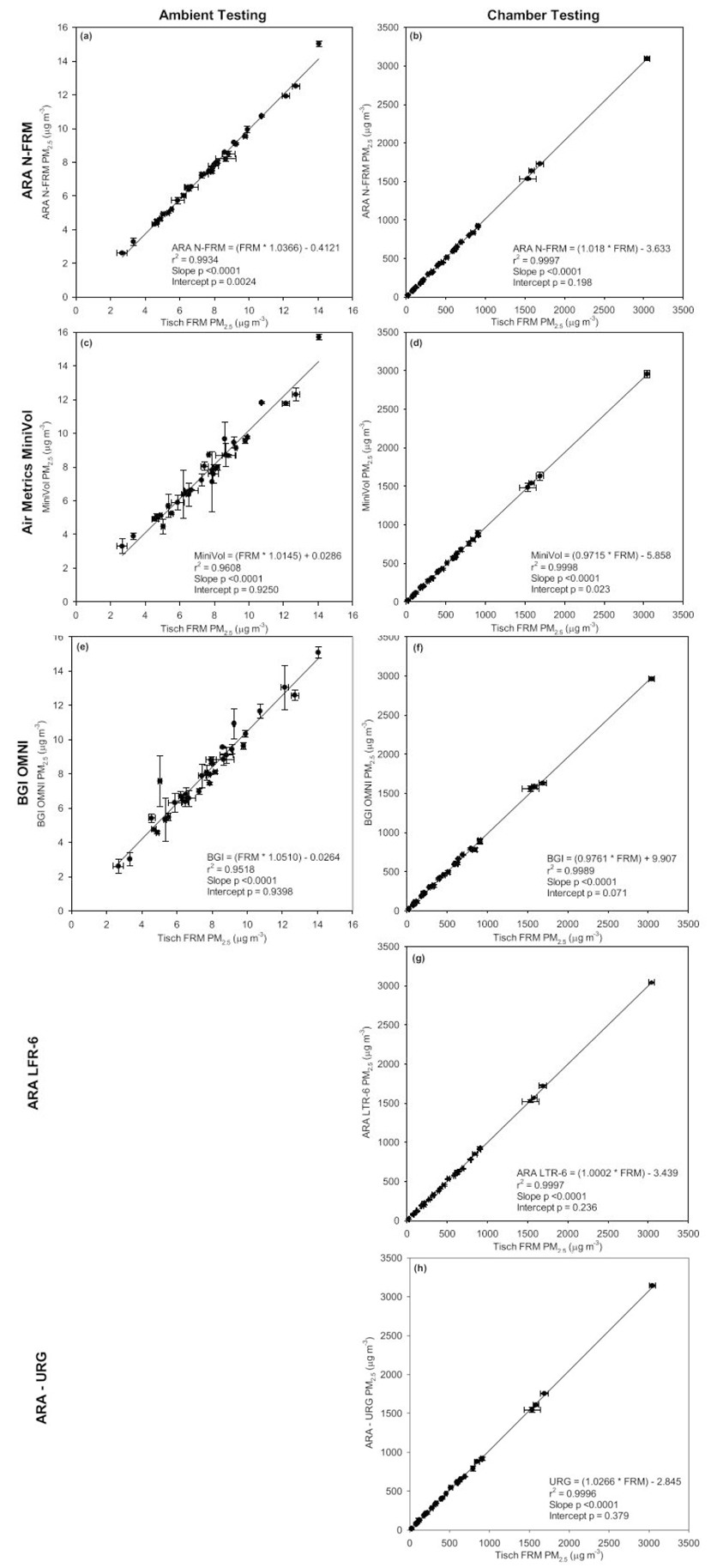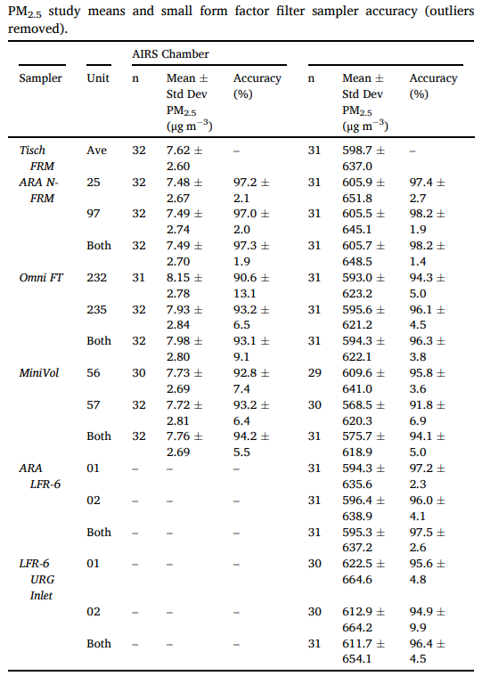 本研究中的所有取樣器在測定環(huán)境和煙霧環(huán)境中的PM2.5總濃度方面表現(xiàn)良好,ARA N-FRM更是可以達到EPA PM2.5 FRM質(zhì)量測量精度性能的標準。此外,與傳統(tǒng)的FRM采樣器相比,其成本更低,部署更方便,可以有效的用于科學(xué)監(jiān)管PM2.5濃度相關(guān)數(shù)據(jù)采集的工作。