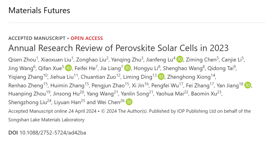 您所在的位置:首頁(yè) > 行業(yè)動(dòng)態(tài) > 全球鈣鈦礦太陽(yáng)能電池2023年度研究進(jìn)展