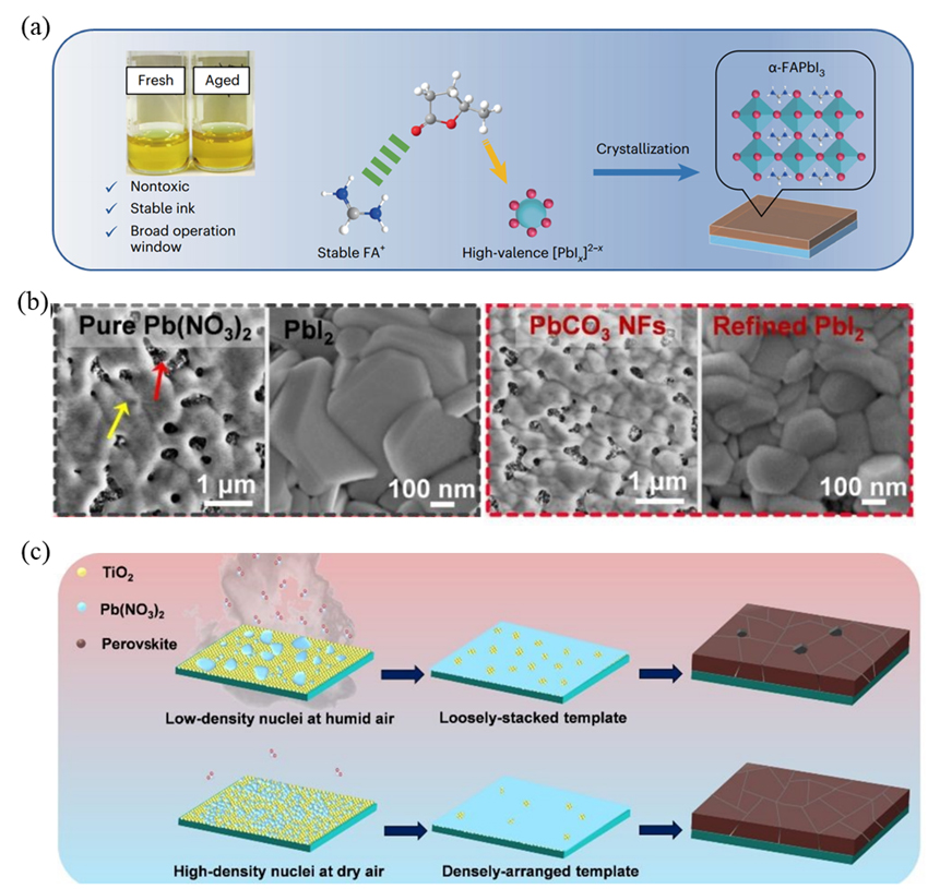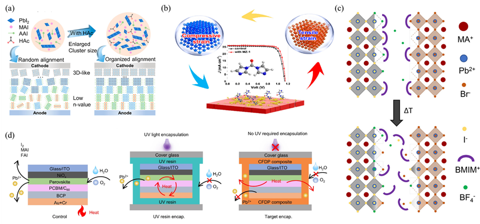 (6)鉛毒性和綠色溶劑:未來(lái)的研究工作應(yīng)側(cè)重于研究具有高前體溶解度和優(yōu)異基底潤(rùn)濕性的先進(jìn)環(huán)保溶劑。此外,還需要進(jìn)一步開(kāi)發(fā)更全面的封裝方法,通過(guò)內(nèi)部和外部保護(hù)措施的結(jié)合,提高對(duì)水分、化學(xué)物質(zhì)和鉛的抵抗力,并增強(qiáng)解毒能力。