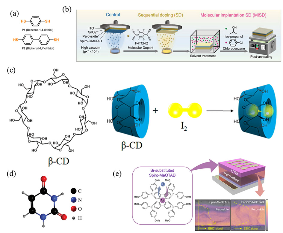 (1)正式n-i-p PSC:首先,通過(guò)適當(dāng)?shù)木w生長(zhǎng)控制策略制備具有更寬吸收范圍的高質(zhì)量FAPbI3 鈣鈦礦。其次,基于材料的結(jié)構(gòu)特征,開(kāi)發(fā)更適合鈍化FAPbI3的新型鈍化劑。第三,鑒于spiro-OMeTAD的吸濕性和高成本,有必要開(kāi)發(fā)新型的空穴傳輸材料。