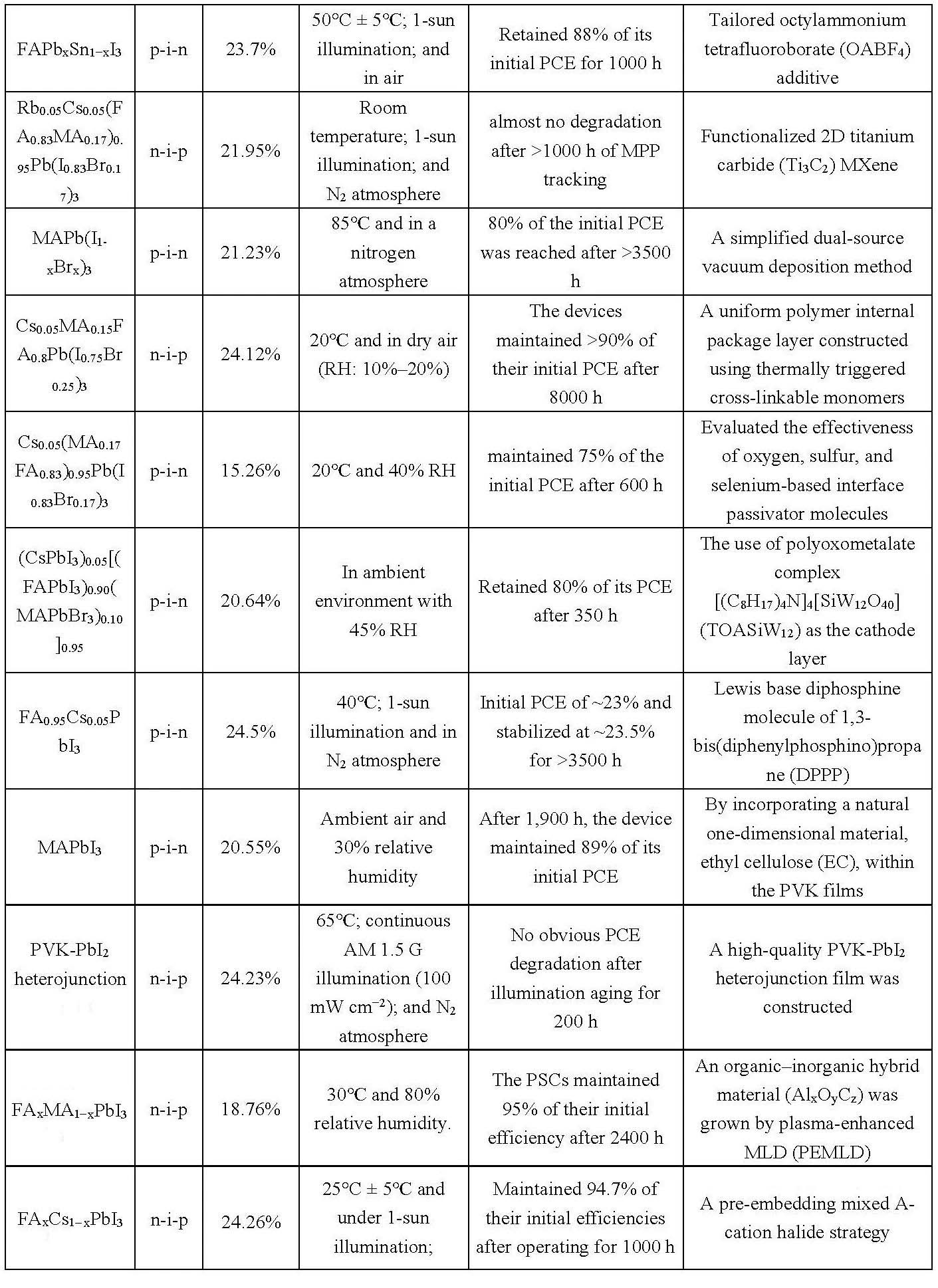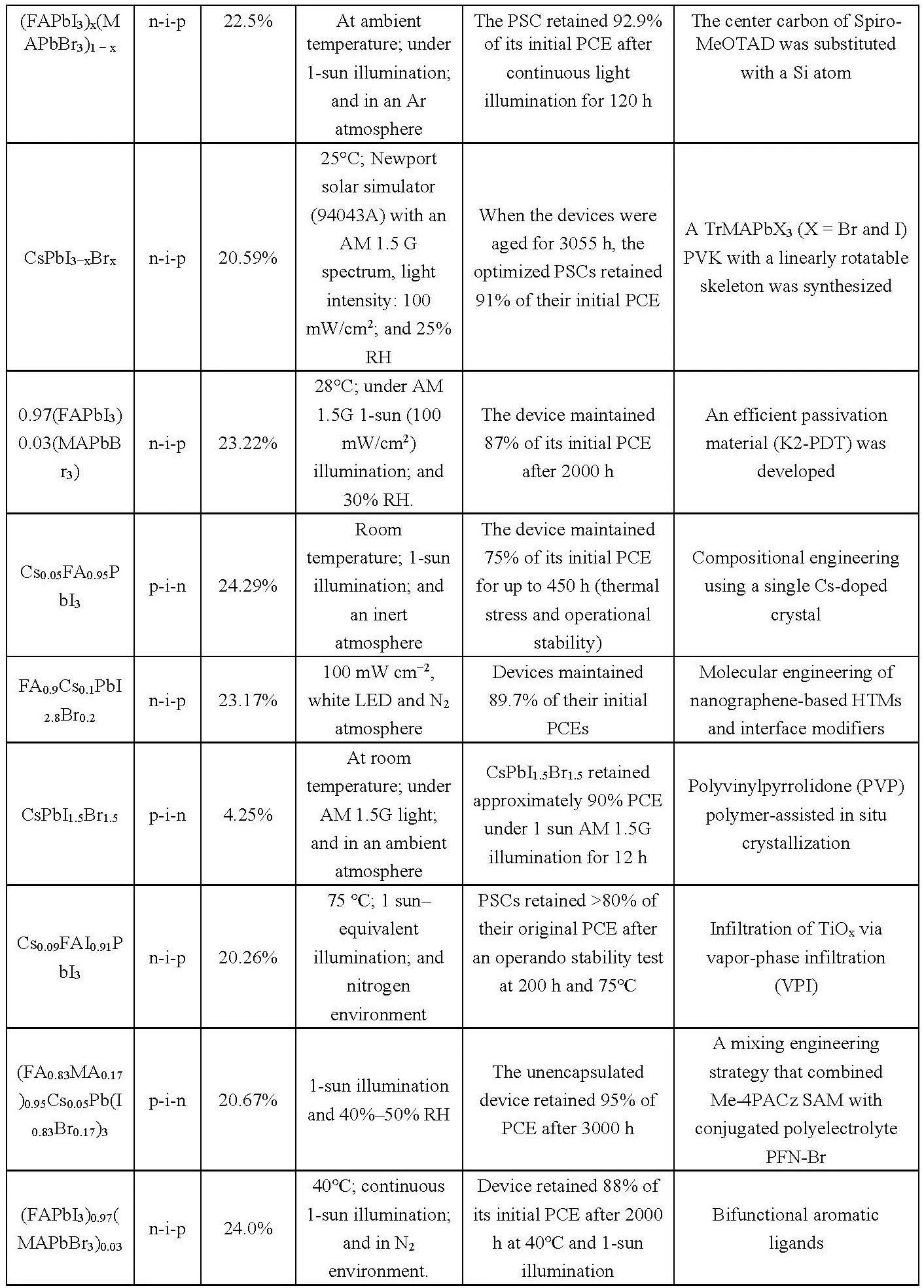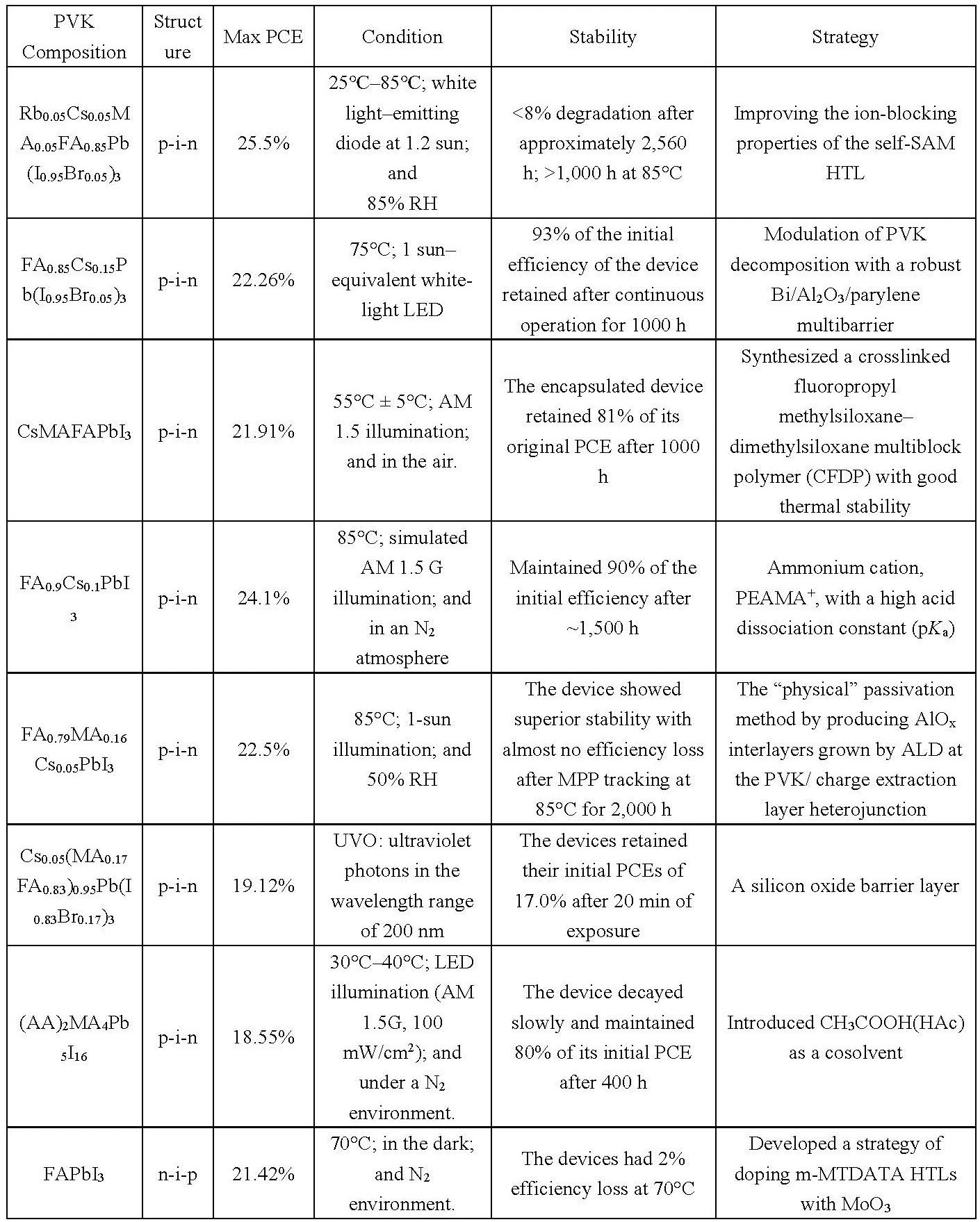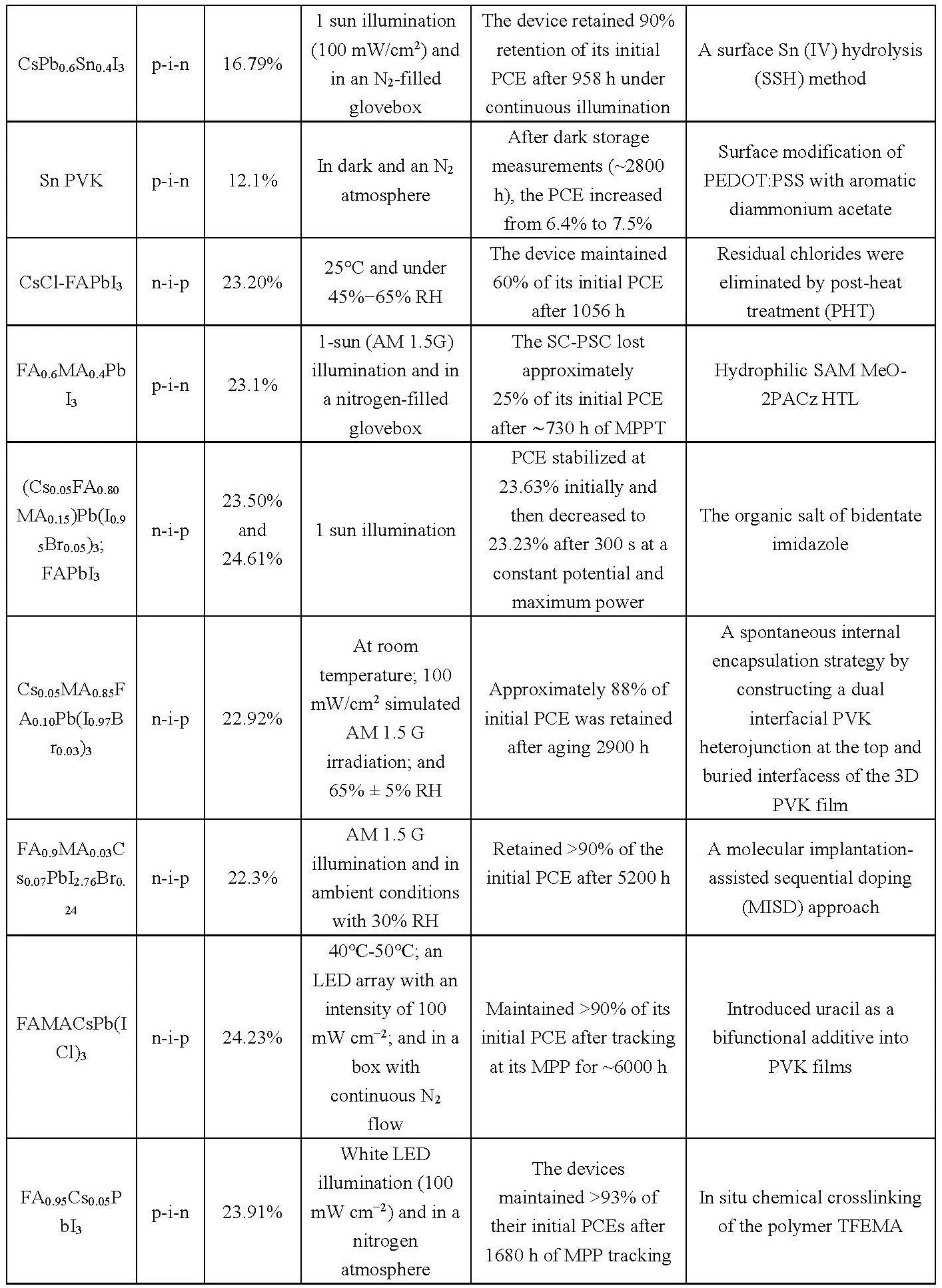 表3 2023年器件穩(wěn)定性研究進(jìn)展表