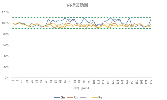 最后一個難點內標穩定性,因為土壤基體和曲線基體不同,導致在土壤分析過程中內標容易漂移,而儀器的穩定性則是分析的關鍵。